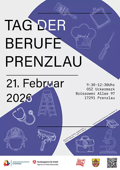 Der „Tag der Berufe Prenzlau“, der nun schon im dritten Jahr als Gemeinschaftsprojekt des OSZ Uckermark und der Ausbildungsinitiative Uckermark mit dem Landkreis Uckermark, der Arbeitsagentur Eberswalde und dem Staatlichen Schulamt Frankfurt (Oder) stattfindet, ist ein wichtiger Treffpunkt für Jugendliche und ausbildende Unternehmen in unserer Region. Die Ausbildungsmesse findet am Sonnabend, dem 21. Februar 2026, von 9.30 bis 12.30 Uhr am Oberstufenzentrum Uckermark in Prenzlau in der Brüssower Allee 97 statt.